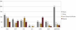 Relevés pluviométriques mars – septembre