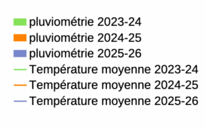 Ce qui devient une vraie tendance ces dernières années. Après la vague de froid de fin décembre/début janvier (avec 9 jours de gel (entre 0 et -5°C) par exemple à Montpellier et Nîmes, jusqu’à -9°C à Prades le Lez), les températures de fin janvier et surtout février ont été très douces. A l’échelle de la France, février est le 2ème mois le plus doux (derrière 1990) sur la période 1900-2026, avec une température moyenne supérieure de 3,5°C à la moyenne (1900-2026, source Météo france). On le voit bien sur les graphiques ci-dessus, 2026 rejoignant les courbes de 2024.